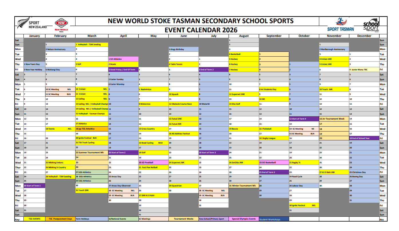 See your School Sports Coordinator to enter all TSS Sports Events